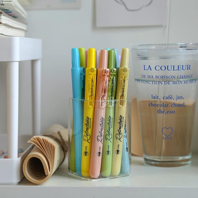 WRITECH Retractable Bible Highlighters Assorted: Pastel Colors No Bleed Aesthetic Marker Pen Chisel Tip, 12 Pack