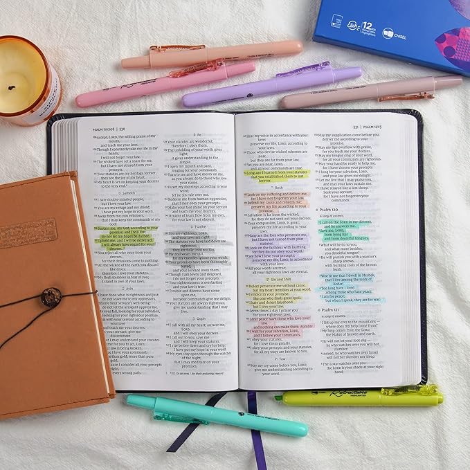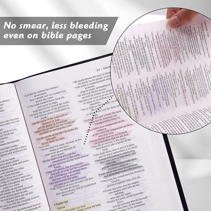 - These highlighter pens feature vivid, fade-resistantance ink and 12 special eye-friendly light colors won't bleed through most bible paper.