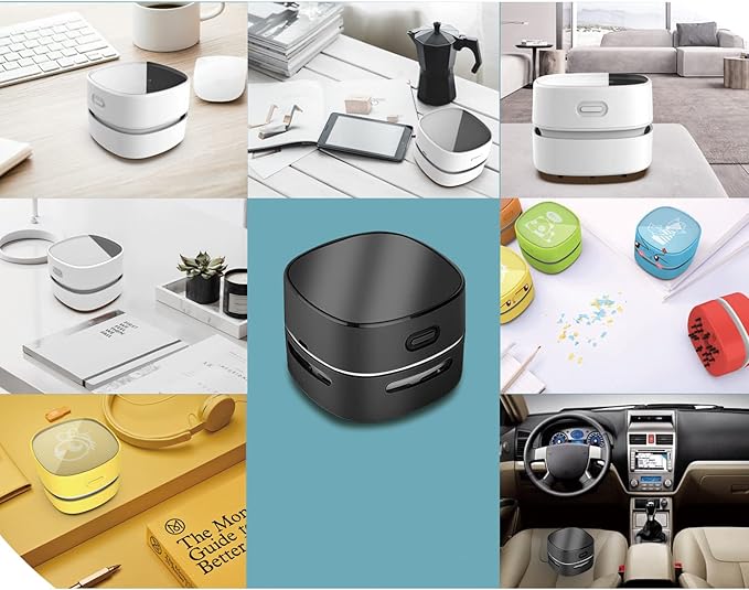 - 【High Suction and Low Noise】With 1000Pa of suction power, Table Vacuum Cleaner is strong enough to pick up even the largest piles. Yet, it is quiet enough for you to read or sleep while it cleans. Our cordless dust catcher save you from the mess of paper scrap, daily dust, cigarette ash, dog hair or powder on the desk. The table cleaner spins at up to 9000 rpm compared to 6000 rpm of other cleaner. It generates the suction power of a vacuum.