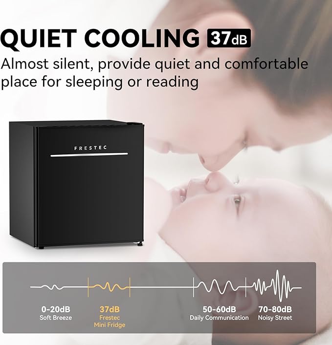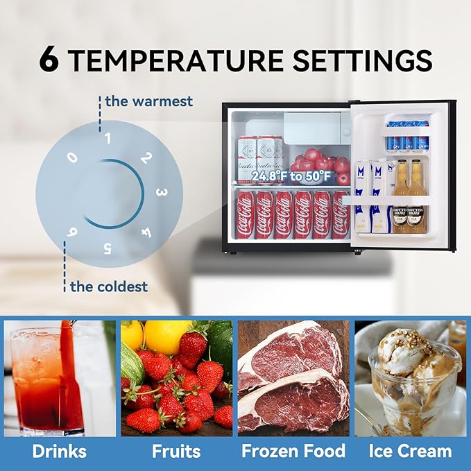 - π₯― ππππππ ππππ πππππ πππ πππππππ πππππ: Thanks to the adjustable thermostat control that is from 1 (cold) to 6 (the coldest), the small fridge offers the optimum temperature range from 28.4-50β to store, fruits and drinks with a high-efficiency and low-consumption compressor for SAVING your electricity BILLS. No matter where you are, the small refrigerator with freezer operates smoothly and quietly at a minimum noise under the 37dB for better fitting in anywhere.