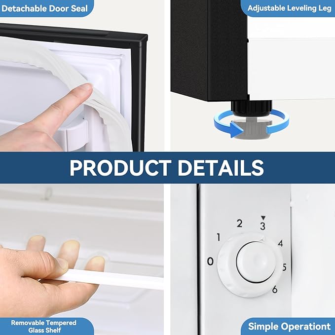 - π₯₯ πππ πππππππ ππ πππ ππππππ πππππ: Are you still struggling in defrosting by your hands? Just stop it! Our new design of one-click defrosting system in the middle of the temperature control knob of this mini fridge with freezer could help it melt in seconds. The soft detachable door seal not only protect the fridge but also makes cleaning easy.