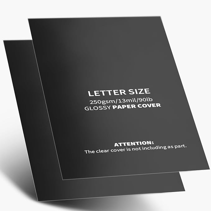 - Glossy and Smooth: These paper binding cover are designed with a black color on one side, and a white color on the reverse. Both sides are smooth and glossy.
