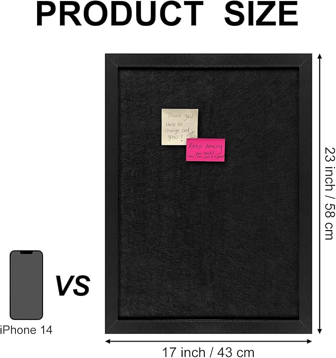 - 【Free Accessories】Package include 1 pack 17 x 23 inch bulletin board. It also comes with the thing you need to install and keep your ideas on the board: 2 screws, 2 hooks, and 5 white pins. Enough accessories for you to exercise your imagination