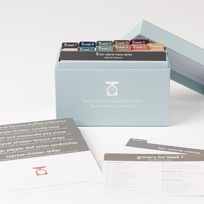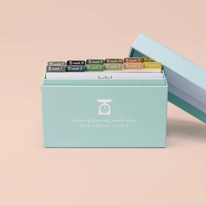 PPP Meal Planner with 72 Recipe Cards (Low Calorie Menu) - Weekly Menu Planner | Sturdy Recipe Box | 12 Reusable Grocery Shopping Lists | 5 Blank Recipe Cards | Recipe Card Protector | Recipe Ideas