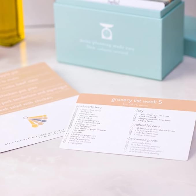 - PLANNING MADE EASY- Includes 12 weeks of 5 Ingredients or Less menus (featuring meals that require no more than five main ingredients plus a few pantry staples you already have on hand), 12 reusable grocery shopping lists, 5 blank recipe cards and a daily family grace!