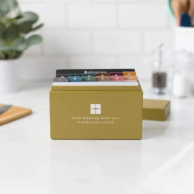 Meal Planner with 72 Recipe Cards (Celebration Menu) - Weekly Menu Planner | Sturdy Recipe Box | 12 Reusable Grocery Shopping Lists | 5 Blank Recipe Cards | Recipe Card Protector | Recipe Ideas