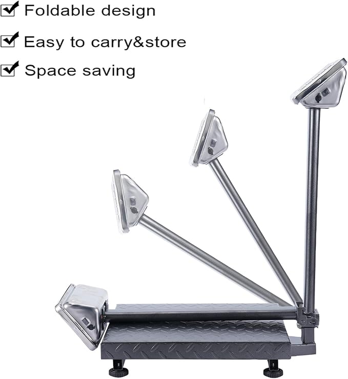 - 【Top Quality】-- The weighing platform measures 15.7''Lx19.7''W, sturdy and wide platform accommodates various items. 4 Adjustable skid proof feet for keeping the platform balance. Foldable design makes it easy to carry and store, saving space.