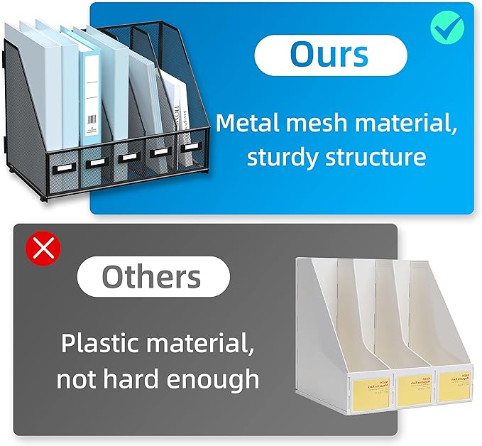 - [High-Quality Desk Organizer] Crafted from metal mesh, our 5 section magazine holder stands out for its quality and strength. Designed to resist damage and deformation, this magazine rack is a sturdier, more sturdy option.