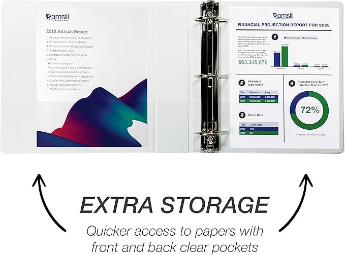 - Heavy-Duty Design: This Samsill 2-inch 3-ring D-ring binder features a robust D-ring construction that provides tear-resistant storage for heavy loads. Ideal for school supplies, office filing systems, and home document organization, it holds papers securely without bending or slipping, making it a reliable choice for daily use