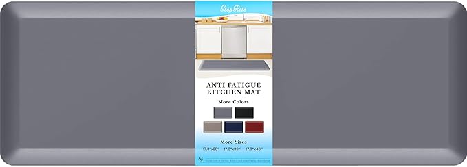 StepRite 4/5 Inch Thick Kitchen Mat Anti Fatigue Mat Kitchen Rugs Kitchen Decor Non-Slip, Stain Resistant, Waterproof Kitchen Mats Desk Mat for Kitchen, Office, Workshop, Grey, 17'' x 47''