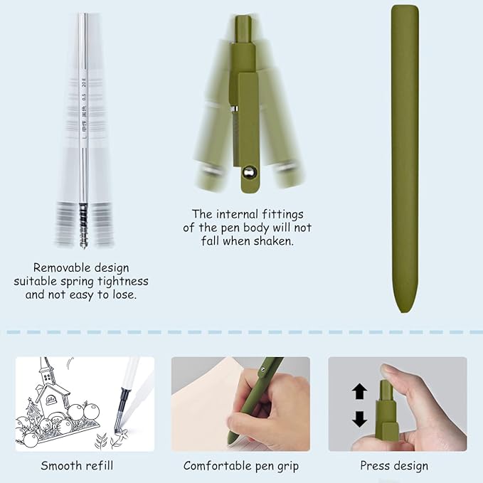 - Gel Ink Pens and Refills Set: You will receive 5 pieces of aesthetic pens in a modern, minimalist design in 5 different colors, including dark gray, smoke gray, beige green, haze blue and oatmeal yellow. The package also includes 5 replacement refills, a quantity sufficient for your daily use and replacement needs, which you can also share with others