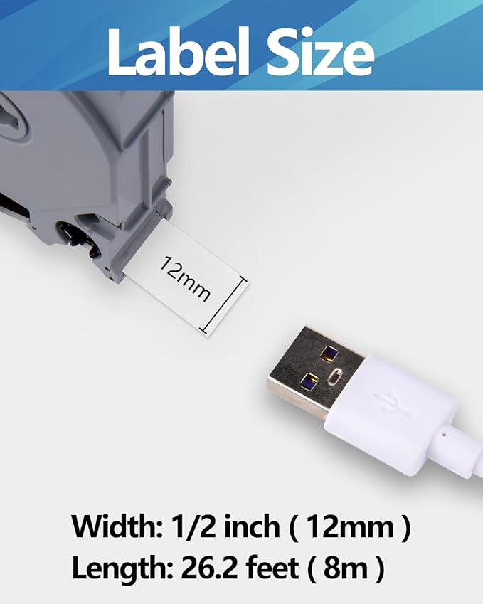 - Width: 1/2" , Length: 26.2' ; 0.47 inch x 26.2 feet ( 12mm x 8m ) each tze-131 tze131 tz-131 tz131 tape