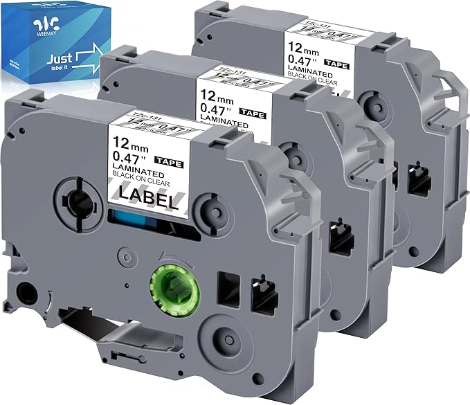 Weemay 3X Clear Label Tape Replacement for Brother Label Maker TZe Tz Tape 12mm 0.47 Laminated Clear TZe131 131 for PT H110BP D210 D220 P710BT P300BT D400 D200 H111 D600, 1/2 Inch x 26.2 Ft