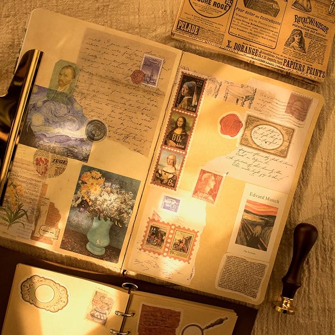 - 【DIY Your Stuff】The retro stickers are perfect to embellish art journal, collages, mixed media art, scrapbooking & stamping supplies, decorating planners, diary and bullet journals, hand account, travel book, account book, handmade card, paper crafting, gift wrapping, label, photo album, stamp etc. Feel free to customize your belongings, make your personality shine!