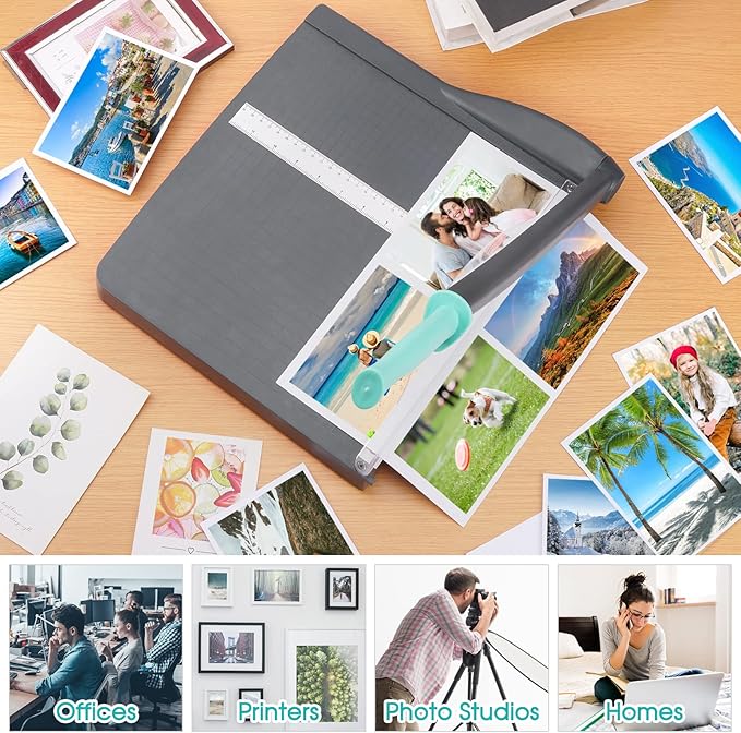 Paper Cutter, Paper Trimmer with Safety Guard, 12" Cut Length Paper Slicer with 16 Sheet Capacity Paper Cutting Board,Guillotine Paper Cutters and Trimmers for Cardstock Cardboard Vinyl (Gray)