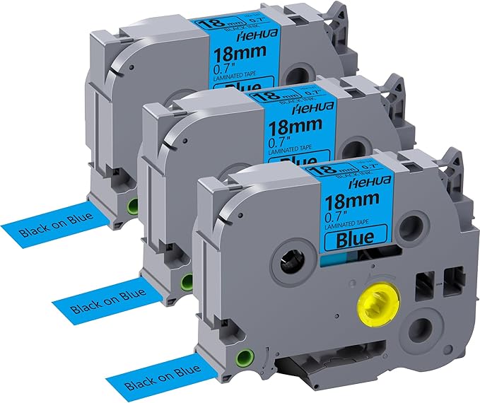 Hehua Tape Tze Tz 18mm 0.7 Laminated Blue Compatible for Brother P-Touch TZe-541 TZe541 TZ541 TZ541 Tape for Ptouch PT D400 D600 D610 P710bt, 3/4'' x 26.2ft Black on Blue, 3 Pack