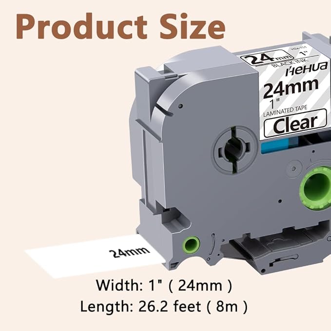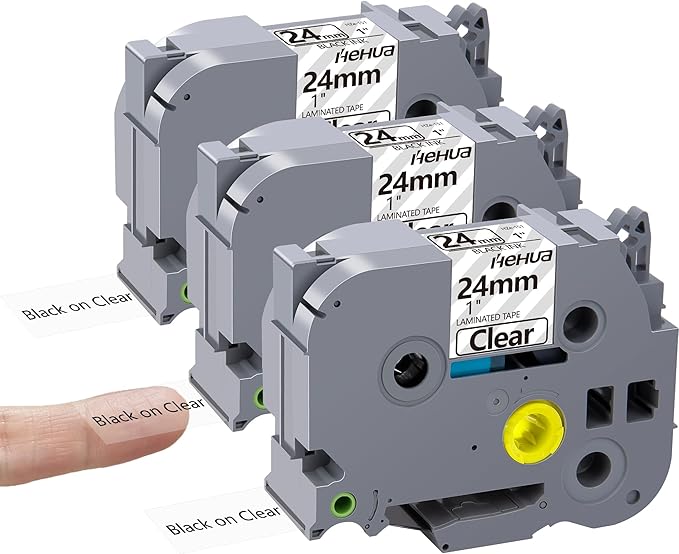 - Size : 1'' Width x 26.2' Length or 24mm x 8m, Package : 3 Pack , Color : Black on Clear
