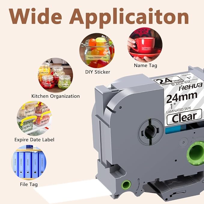 - Wide application: Compatible for Brother P-touch TZe 151 label tape is ideal to print clear, good-looking and durable labels. These labels are great for shelving, kitchen use, cabinets, file folders, USB sticks, food containers, storage boxes, personal possessions, children's school equipment with it's superior adhesive