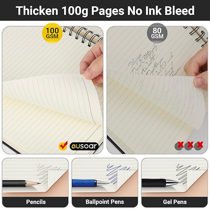 - 【Package Included】1 pack A5(5.5"x8.3") lined notebook(each book has 240 pages/120 sheets of paper). And 100gsm thickened inner paper is great for smooth writing with no ink bleed. Also the beige color could greatly protect our eyesight.