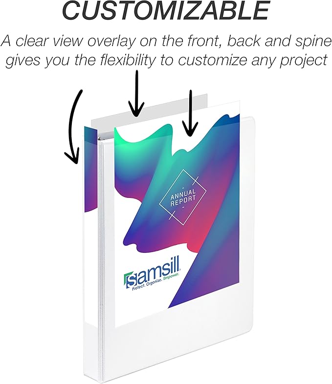 - Clear View Cover: The binder’s front, back, and spine overlays are designed for easy customization. Perfect for creating personalized presentations, professional reports, and organized school projects. It’s a versatile choice for anyone looking to enhance document presentation and labeling.