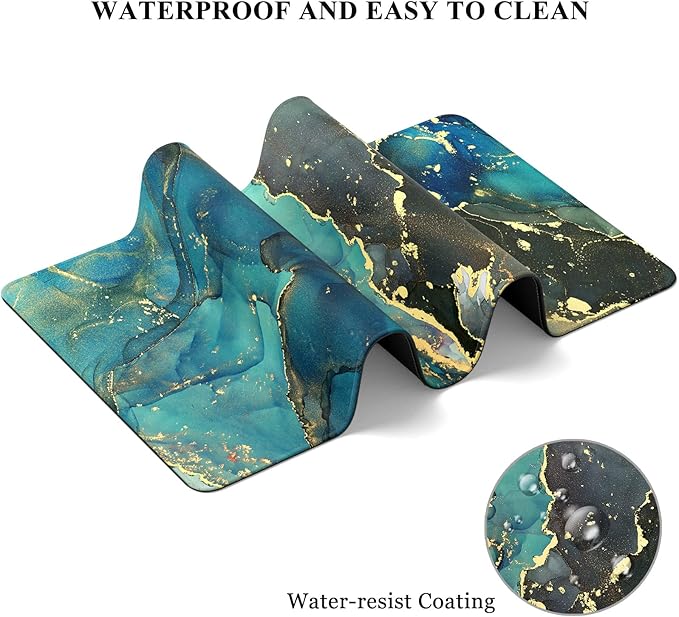 Desk Mat, 32" x 12" XXL Extended Large Gaming Mouse Pad, Desktop Decor Desk Pad, Cute Men Women Office Supplies and Accessories, XL Mouse Mat for Laptop & Keyboard, Teal Marble