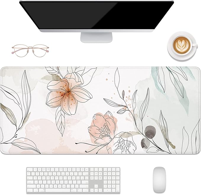 Desk Mat, 32" x 12" XXL Extended Large Gaming Mouse Pad, Desktop Decor Desk Pad, Cute Men Women Office Supplies and Accessories, XL Mouse Mat for Laptop & Keyboard, Watercolor Flowers