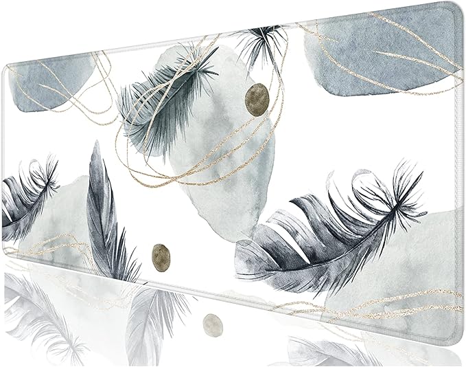 Desk Mat, 32" x 12" XXL Extended Large Gaming Mouse Pad, Desktop Decor Desk Pad, Cute Men Women Office Supplies and Accessories, XL Mouse Mat for Laptop & Keyboard, Minimalism Feather
