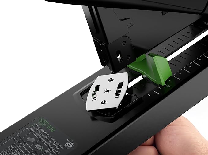 Novus B50 re+New Heavy Duty Stapler, 140 Sheet Capacity, Made of 81% Recycled Plastic, German Engineered, Adjustable Guide, 25 Yr. Warranty, Black (023-0065)