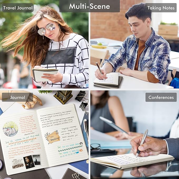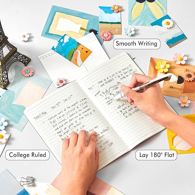 - These travel journals bulk for women have 92 blank lined pages (46 sheets), which would be sufficient for daily usage. The note taking notebooks have a smooth cover, round corners and tight stitching, which are designed to lay 180° flat. Some quick notes can help you remember important dates and find the page you want in a very short time.