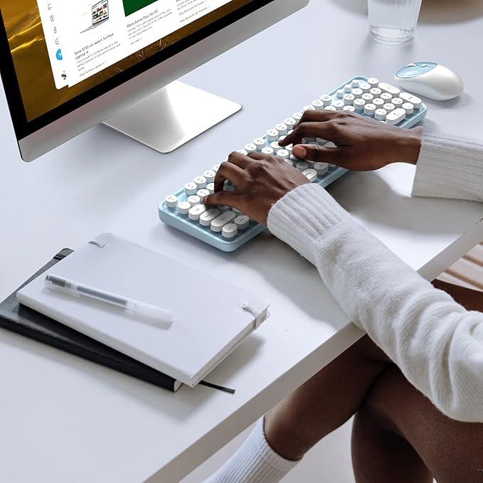 MOFII Wireless Keyboard and Mouse, Retro Full Size Typewriter Keyboard and 3 Adjustable DPI Mouse Combo for Windows 7/8/10, Laptop, Desktop, PC, Computer (Blue)