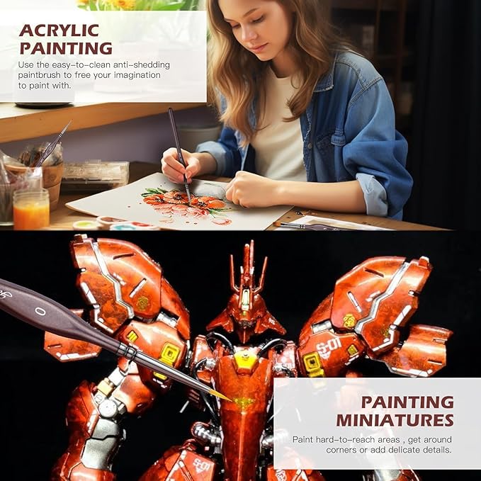 - 【Perfect for Precise Painting】Micro detail paint brush can handle various paintings such as acrylic, watercolor, tempera, enamel, gush, oil, face paint.