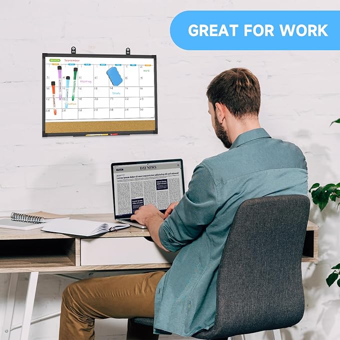 - MAGNETIC CALENDAR WHITEBOARD AND CORK BOARD COMBINATION DESIGN: Magnetic dry erase calendar board has two functions with a dry erase calendar board and a bulletin board. Can provide more convenience for your work and life.