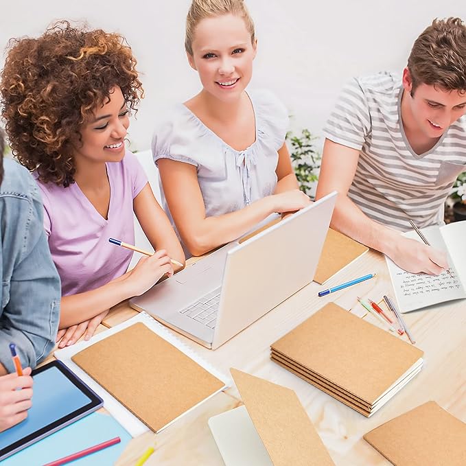 feela 60 Pack Kraft Notebooks Bulk, Lined Travel Journals Note Pad Notebooks for Men Women Girls Students, Making Plans Writing Memos Office School Supplies, A5, 60 Pages, 8.3” X 5.5”