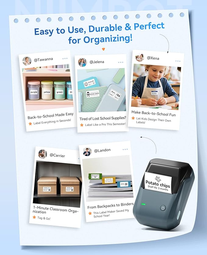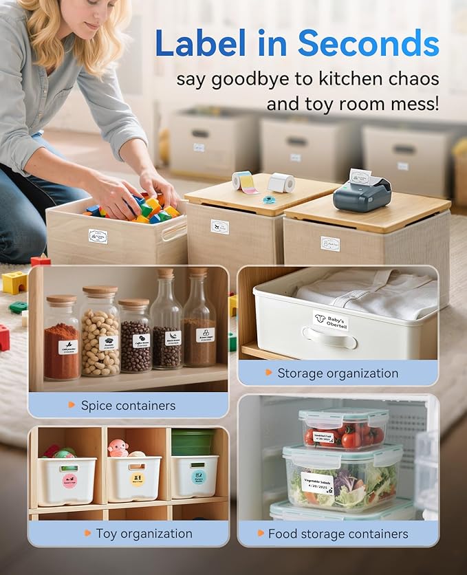 - 【Inkless Label Maker】 No Ink, No Mess! Print Smart, Save More!Thermal printing technology just load and print!Smart Built-in rechargeable battery with auto-shutoff after 15 minutes of inactivity saves energy.Perfect for precision tasks like marking medicine bottles, organizing wires, tracking expiration dates, or highlighting important reminders with crisp clarity