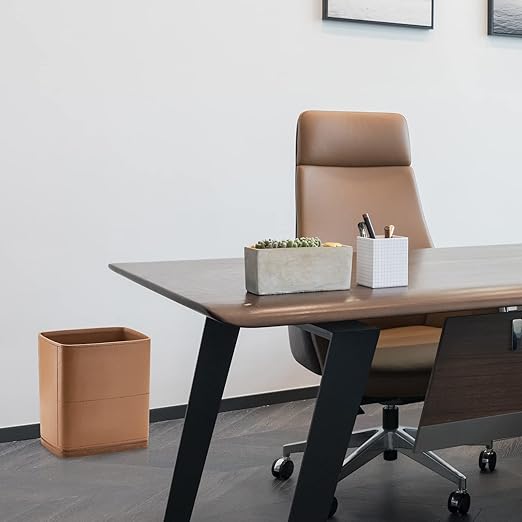 Polytree Bathroom Trash Can 1.8 Gallon(7 Liter) Small Kitchen Garbage Can,Decor Wastebasket for Bedroom Office,Resin Hand-Carved Leather Brown