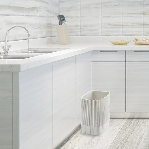 Polytree Bathroom Trash Can 1.8 Gallon(7 Liter) Small Kitchen Garbage Can,Decor Wastebasket for Bedroom Office,Resin Marble White
