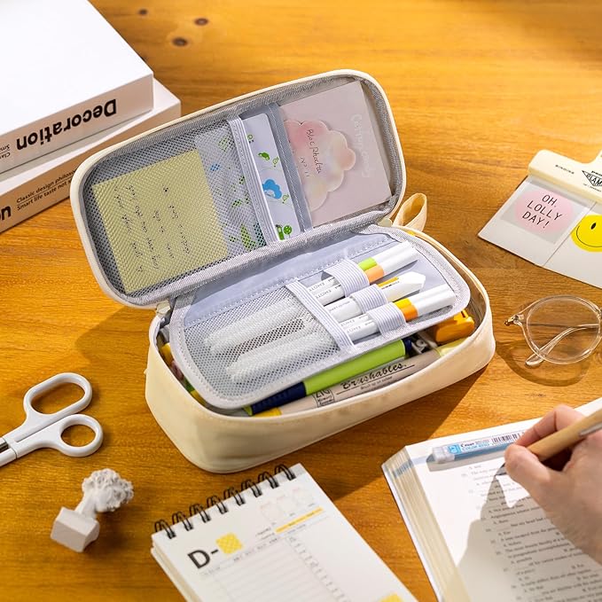 CICIMELON Durable Pen Pencil Case Big Storage Pen Pouch Bag for School Supplies College Teen Girls Adults, Beige