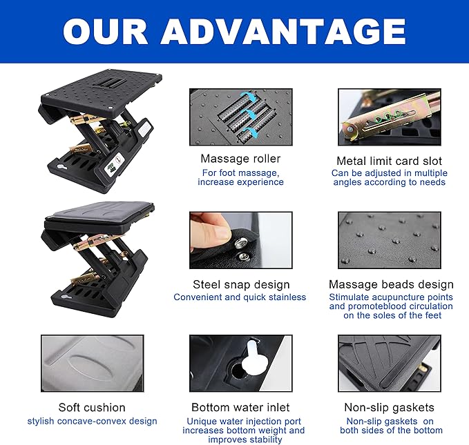 - Ergonomic comfort: Ergonomic Foot Rest Under Desk provides maximum comfort and support for your legs and foot. foot rest under desk No installation is required for this office footrest under desk, making it simple to use. Anyone can operate it without any hassle. under desk footrest can be adjusted to multiple angles to accommodate your needs, desk foot stool reducing pressure and strain on your Legs and Foot.