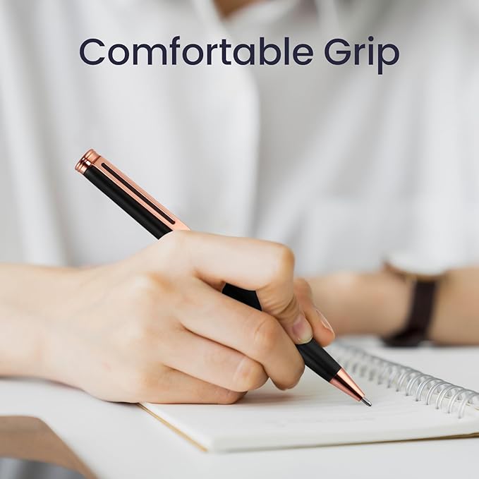 - Classic Black Pens : Classic black with rose gold accent delivers style without sacrificing functionality, perfect fit for men, executive, business, office, college, flight attendant, police officer, guest pen, uniform pen, co-worker gift, etc