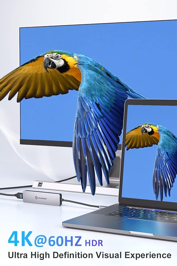 UtechSmart 6-in-1 USB-C Hub, 4K@60Hz HDMI Adapter for MacBook Pro/Air, Type-C Laptop Dongle (100W PD Port, SD/TF Card Reader, 2 USB 3.0 Ports)