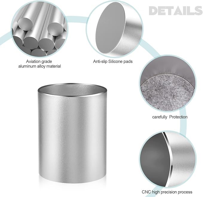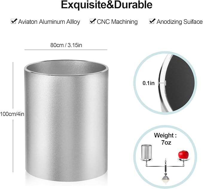 - 😊【Large Capacity】Diameter: 3.15inch/8cm, Height: 3.93inch/10cm; Weight: 6.2Ounce /176g. This large metal pen holder cup can accommodate about 20 pens.