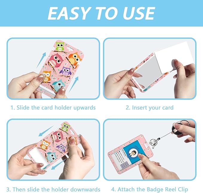 - Cute ID Badge Holder: Made from durable ABS material, this lightweight holder protects your cards from damage. External dimensions: 2.7 x 4.3 inches; internal: 2.2 x 3.4 inches. Holds up to 2 standard cards (ID, credit, access) or 1 thicker card like an RFID badge