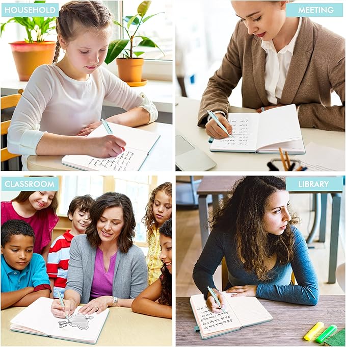 - Feela 5 Pack Classic Ruled Notebooks contains 5 sky blue ruled sturdy cover notebooks and 5 Black Retractable Pens. Each of the notebooks measures 8.3” x 5.1”, which is perfect to carry and easily held by young girls and boys. These black cute pens are customized to be placed in the pen holder, which is pretty convenient.