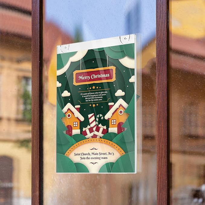 - šć8.5x11 inches Standard SizećPecMuikee acrylic sign holder size is 8.5x11 inches. In order to insert paper smoothly, PecMuikee have thoughtfully designed openings on 3 sides, so the wall mount sign holders can meet your diverse needs.