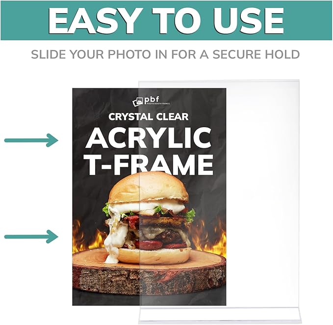pbf 4x6 Acrylic Picture Frame Display Stand | 4 x 6 Vertical Clear Acrylic Sign Holder | T-Style Photo Frame for Table Sign, Tabletop Wedding Sign, Menu, QR Code (6-Pack)