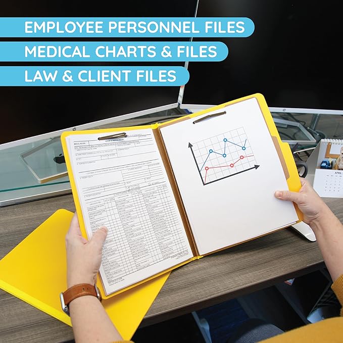 - Quickly and easily organize medical records, project reports, and important documents with our yellow classification folders, 1 divider, letter size (8.5in x 11in), 10 per box.