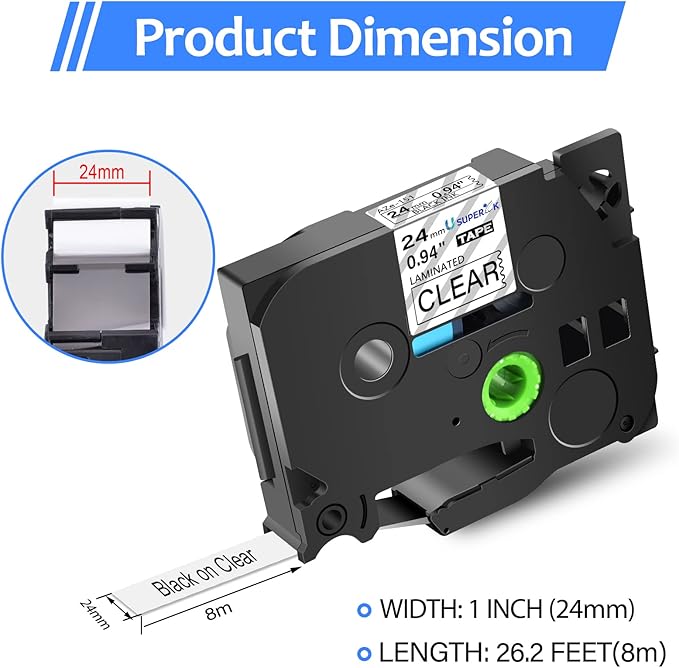- Our compatible tze tz 24mm 0.94 Inch clear label maker tape are great for indoor and outdoor application, ideal for flat and dry, smooth flat surfaces, including in homes, offices, schools, hotels and hospitals, for labeling files, folders, shelves, books, accessories, etc