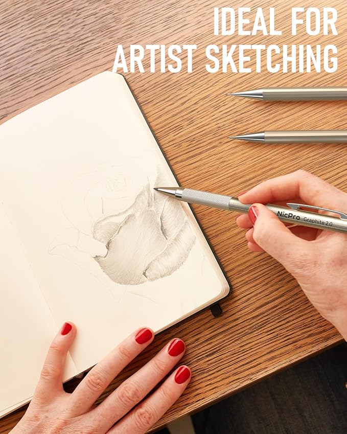 Nicpro 5 PCS Art Mechanical Pencils Set, Metal Drafting Pencil 0.3 & 0.5 & 0.7 & 0.9 & 2mm Graphite Lead Holder(4B 2B HB 2H Colored) for Sketching Drawing With Lead Refills Eraser Case