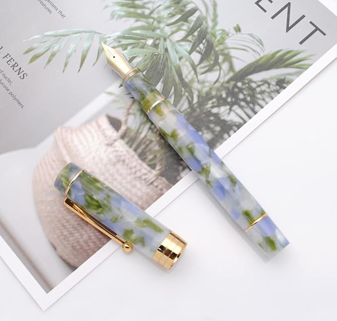 - The high-quality acrylic resin pen body, soft touch as warm as jade, with golden metal trim, make the pen looks more high-end
