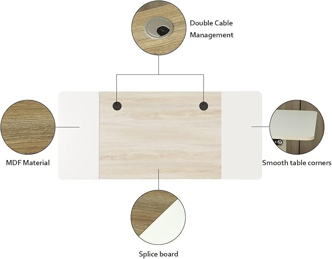 - Sleek design: Functional and modern, the desk’s sleek and contemporary design is a suitable addition for any living space. The particle top is splice board.